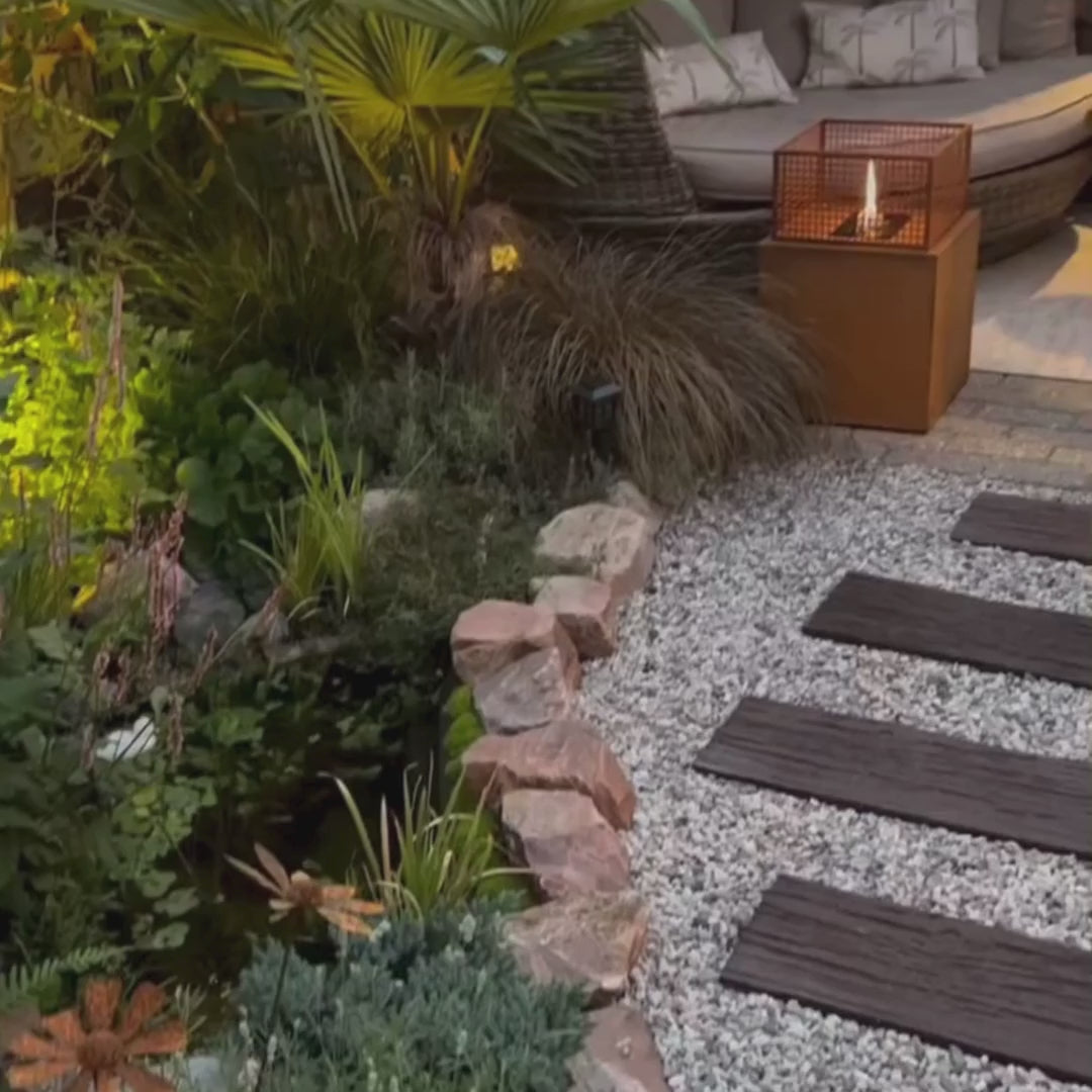 Breng warmte en sfeer in huis met de Agni 40 Roest van Tenderflame. Deze buitenhaard uit de exclusieve Vulcan Line combineert een robuust ontwerp met een stevige vlam. Dankzij het karaktervolle cortenstaal en het strakke vierkante design met rasterstructuur is dit een echte eyecatcher – zowel binnen als buiten.