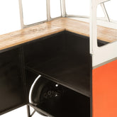 Met zijn robuuste metalen body en levendige oranje kleur is deze bus bar niet te missen. Het ontwerp brengt direct een glimlach op je gezicht en geeft elke ruimte een speels accent. De bar is niet alleen stijlvol, maar ook praktisch ingedeeld met voldoende werkruimte en opbergmogelijkheden.