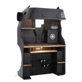Deze bar is niet alleen een functioneel meubel, maar een waar decoratief statement. De royale opstelling biedt volop ruimte voor flessen, glazen, accessoires en zelfs verlichting dankzij de geïntegreerde E27-fittingsocket. Ideaal voor grote woonruimtes, horecazaken of een stoere mancave.