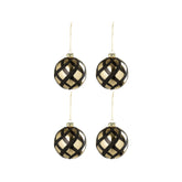 Doos Van 4 Kerstbal Geruit Glas Goudkleurig/Zwart J-Line