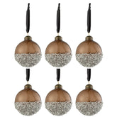 Doos Van 6 Kerstballen Parels Zilver Glas Bruin Small