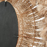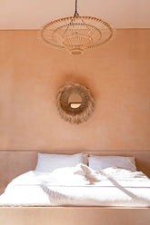 Deze prachtige komvormige spiegel is een unieke samensmelting van natuur en elegantie. Deze betoverende spiegel is handgemaakt van duurzaam abacagras en voegt stijl en diepte toe aan elk interieur. De warme tinten van het gras, dat prachtig rond de lijst gedrapeerd is, maken dit een ideaal stuk voor zowel moderne als meer traditionele ontwerpen. Verrijk je inrichting met deze prachtige eco-vriendelijke spiegel, die de schoonheid van de natuur in elke weerspiegeling viert.