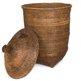 Handgeweven Rotan Wasmand met Deksel – Etnisch Chique en Praktisch