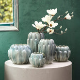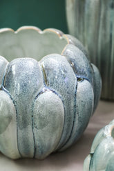 Divinder Petrol Keramiek Ribbed Pot Round M Dia20,5xH16cm PTMD