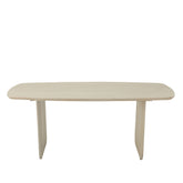 Dankzij het strakke ontwerp past deze eettafel perfect binnen diverse woonstijlen — van modern minimalistisch tot warm boho-chic. De neutrale kleur brengt licht en ruimte in de kamer, terwijl het houten blad warmte toevoegt. -