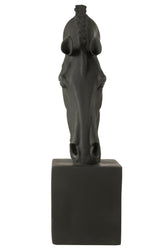 Tijdloze uitstraling: Het zwarte design maakt dit paardenbeeld een veelzijdige eyecatcher.
