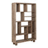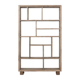 De asymmetrische indeling van de open vakken geeft een speelse, moderne twist aan het robuuste materiaal. Dit maakt de kast ideaal voor het stijlvol uitstallen van je favoriete boeken, planten of accessoires.