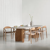 Combineer de Santiago met een teakhouten eettafel voor een natuurlijke, harmonieuze look. Of kies voor contrast met een stalen tafel voor een eigentijdse setting. Deze stoel voelt zich thuis in uiteenlopende stijlen – van Ibiza tot industrieel.