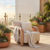 De MUST Living fauteuil Blush is een luxe loungestoel die rust en stijl uitstraalt. Volledig vervaardigd uit massief teakhout, met zachte rondingen, een diepe zit en een opvallend sculpturaal frame. Deze fauteuil trekt direct de aandacht door zijn unieke vormgeving, maar blijft tegelijk ingetogen dankzij het natuurlijke materiaalgebruik.