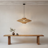 Met een formaat van 80 × 80 × 37 cm is deze hanglamp ideaal boven de eettafel, in de woonkamer of als opvallende plafondlamp in de hal. De neutrale naturel kleur maakt de lamp eenvoudig te combineren met verschillende interieurstijlen, van modern tot landelijk en van bohemian tot industrieel.