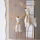 Voeg een vleugje winterse kerst elegantie toe aan je huis met de set van 2 Rendier Sjaal van J-Line. Deze charmante decoratieve rendieren met zijn witte en goudkleurige accenten, vangt de magie van de kerst perfect.