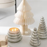 Op zoek naar een manier om je kerst interieur een luxe uitstraling te geven? De Geurkaars Boom Geribbeld Glas Zilverkleurig Large is misschien precies wat je zoekt. Deze stijlvolle geurkaars biedt niet alleen een verfijnde zilveren uitstraling, maar verspreidt ook een verfrissende geur van een besneeuwde ochtend.