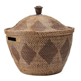 Vormgegeven met elegantie is De Opberg Crown Mand met deksel een handgeweven rotan opbergmand die zowel functioneel als sculpturaal is. Het kroonvormige deksel trekt de aandacht, terwijl de royale komvorm het ideaal maakt voor het opbergen van linnengoed, plaids of kinderspeelgoed.