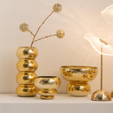 De Vaas Rups Glas Goud is meer dan een gewone vaas. Dankzij zijn unieke rupsachtige vormgeving en de warme gloed van het goud, voegt hij direct een gevoel van verfijning toe aan je interieur. Deze vaas is perfect voor het creëren van een opvallend middelpunt op je tafel of dressoir. Daarnaast is zijn hoogte van 30 cm ideaal voor zowel lange als kortere bloemenstelen, waardoor je talloze bloemarrangementen kunt maken. De combinatie van glas en goud zorgt ervoor dat hij zowel in moderne als klassieke interieurs goed tot zijn recht komt.