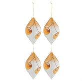 Doos Van 4 Kerstballen Druppel Gedroogd Blad Oker+Glitter Glas Transparant J-Line