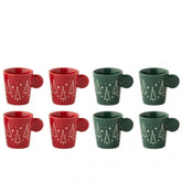 Doos Van 4 Koffiekop Kerstmis Keramiek Kerstrood/Donkergroen Assortiment Van 2 J-Line