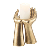 Laat je kaars letterlijk op handen dragen met de Kandelaar Palms Resin Goud van J-Line. Het bijzondere ontwerp in de vorm van twee handen maakt dit een decoratief stuk dat direct in het oog springt. De luxe goude kleur voegt warmte en elegantie toe aan je interieur.