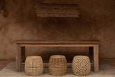 Dankzij het gebruik van bananenblad kies je bewust voor een natuurlijk en duurzaam materiaal. Het vlechtwerk geeft de kruk een rijke structuur zonder zwaar te ogen. Dat maakt deze kruk ideaal voor lichte woonkamers, maar ook voor een slaapkamer of overdekt terras.