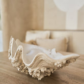 Het gebruik van polyresine maakt de schaal niet alleen licht van gewicht maar ook uiterst duurzaam, wat betekent dat je er jarenlang plezier van zult hebben. Het unieke schelpdesign zorgt ervoor dat deze schaal een echte blikvanger is, ideaal voor het creëren van een rustgevende sfeer in huis, alsof je je in een zomerse oase bevindt.