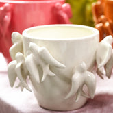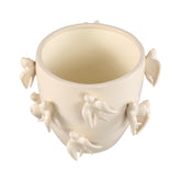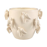 Emmelyn White Round Ceramic Glazed Pot Birds Large PTMD