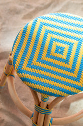 Outdoor Kruk Geo Rond Rotan Geel/Azuurblauw J-Line