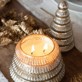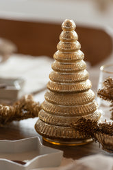 Geurkaars Kerstboom Geribbeld Glas Goudkleurig Large: Voeg Sfeer Toe aan Jouw Kerst Interieur