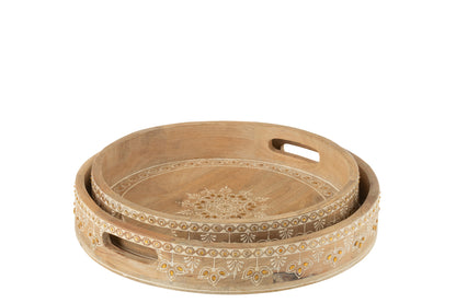 Dienbladen Met 2 Handvaten Kralen Mango Hout Naturel/Wit Set van 2 J-Line