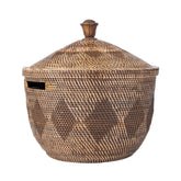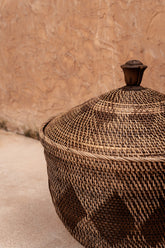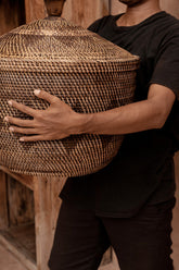 Vormgegeven met elegantie is De Opberg Crown Mand met deksel een handgeweven rotan opbergmand die zowel functioneel als sculpturaal is. Het kroonvormige deksel trekt de aandacht, terwijl de royale komvorm het ideaal maakt voor het opbergen van linnengoed, plaids of kinderspeelgoed.