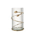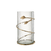 Breng warmte en stijl in huis met deze glazen vaas uit de Leaf-collectie. Het transparante glas is omwikkeld met een gouden decoratieve band in de vorm van bladeren. Deze combinatie van helder glas en goud maakt de vaas zowel modern als klassiek toepasbaar. Perfect voor bloemen, maar minstens zo mooi als windlicht met een kaars.